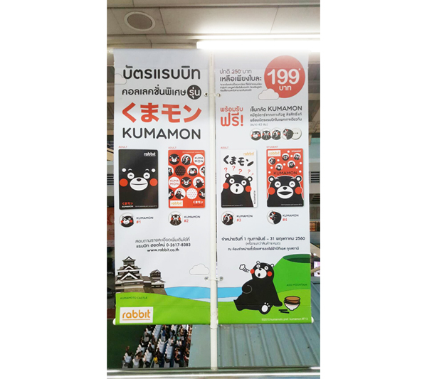 2017年2月では首都バンコクの高架鉄道の「BTS」のラビットカード(日本風に言うなら「PASMO」)でもくまモンとのコラボが始まりました!